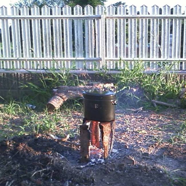 およそ5~6分間だったろうか、蒸気が見えなくなったので焚き火から降ろして蒸らした。