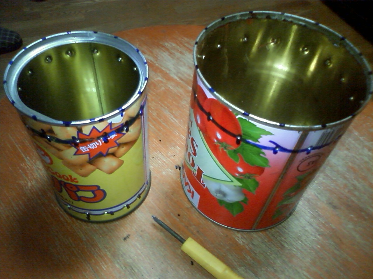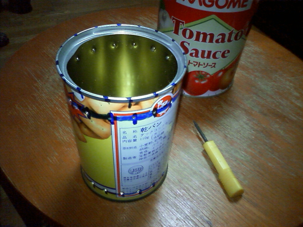 幸いに材料の空き缶が手元にあったので、ネットの画像を参考にして作ってみた。