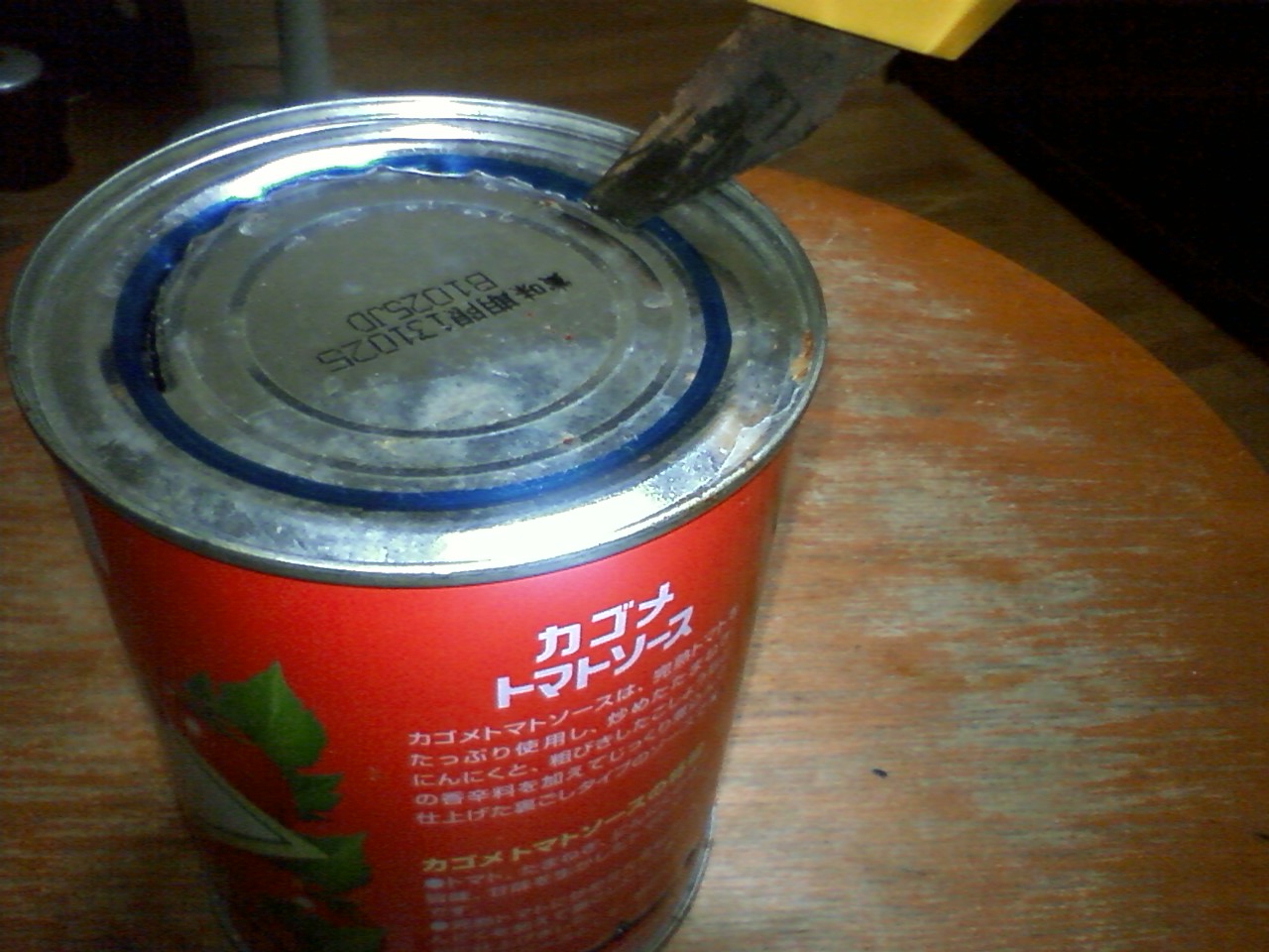 切り出しナイフを使って、グイグイと缶の底を切る。