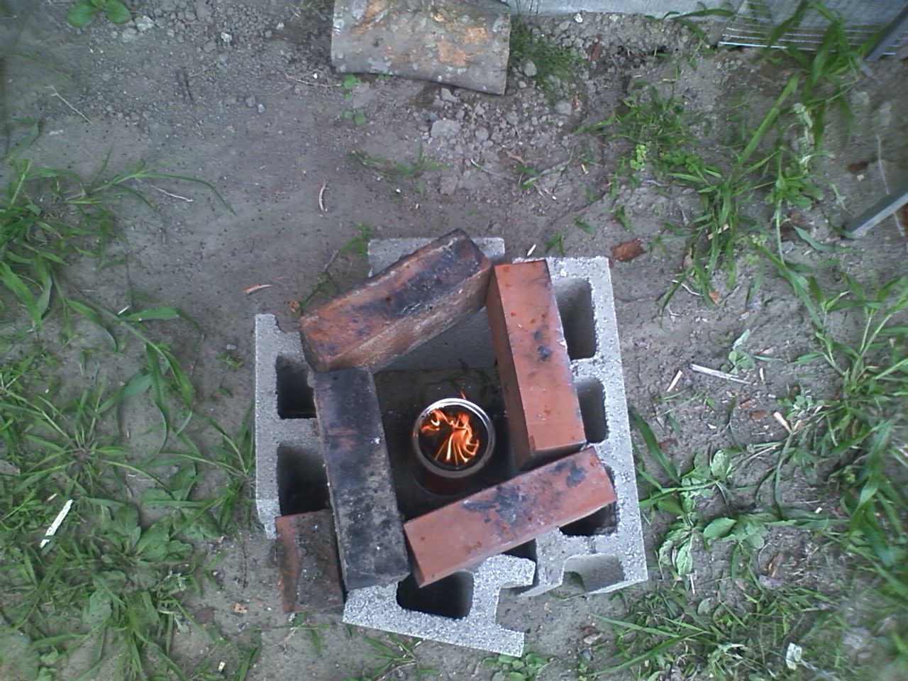 ストーブの構造は大小の缶を二つ使って入れ子にしてあり、細工が面倒な感じがする。
