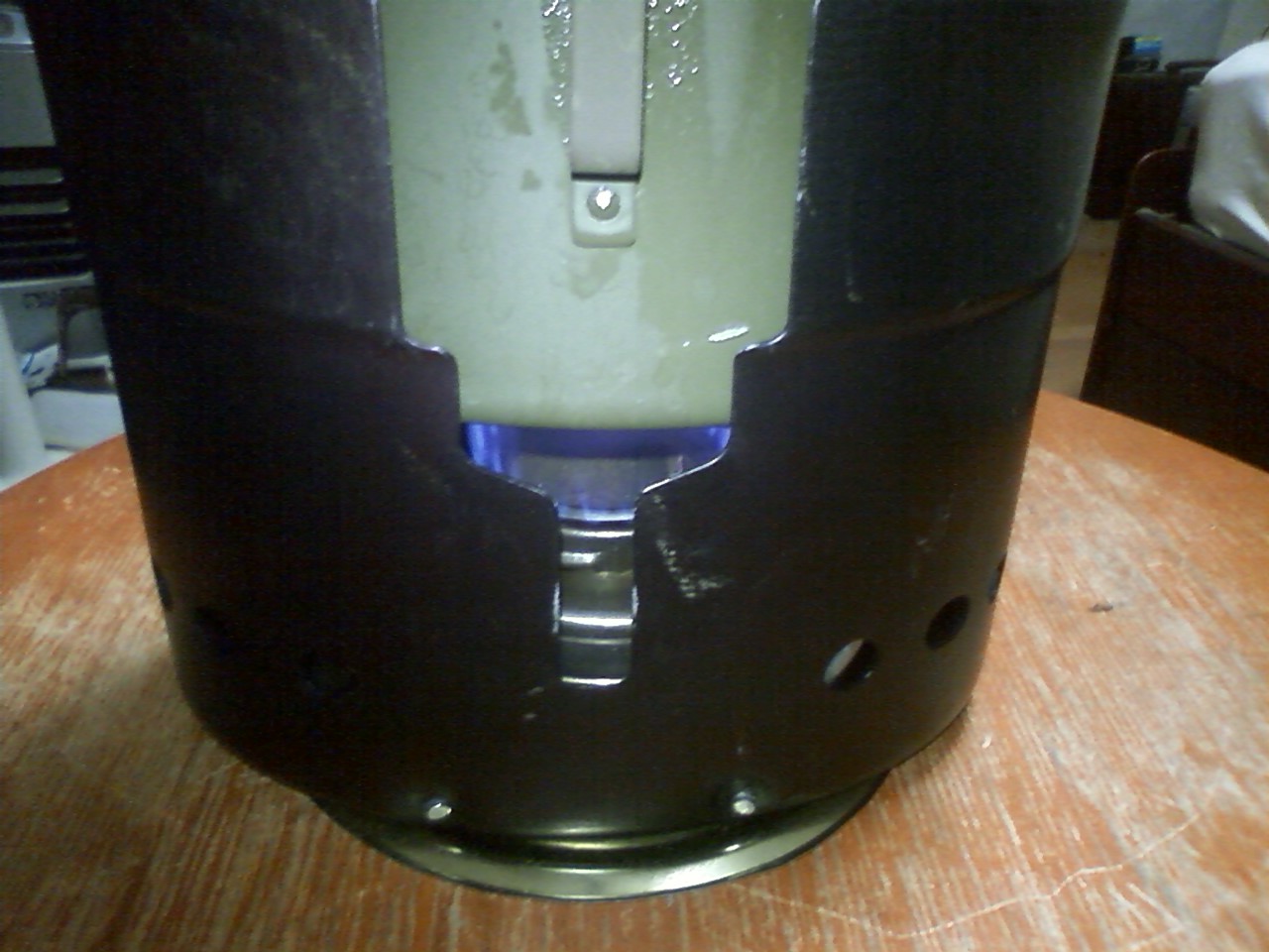 沸騰から15分後に、燃料切れで消火してしまった。(着火から24分後である)