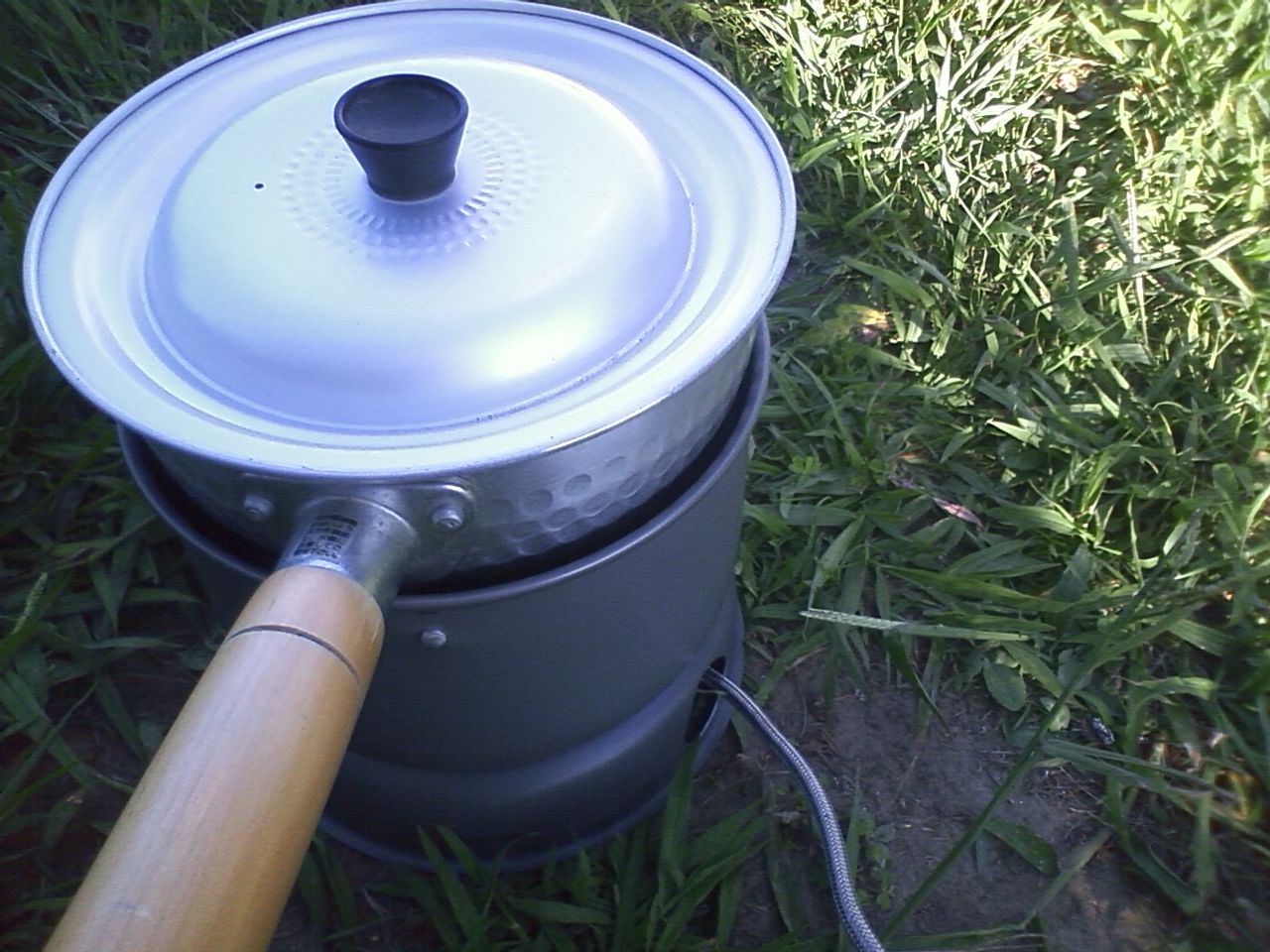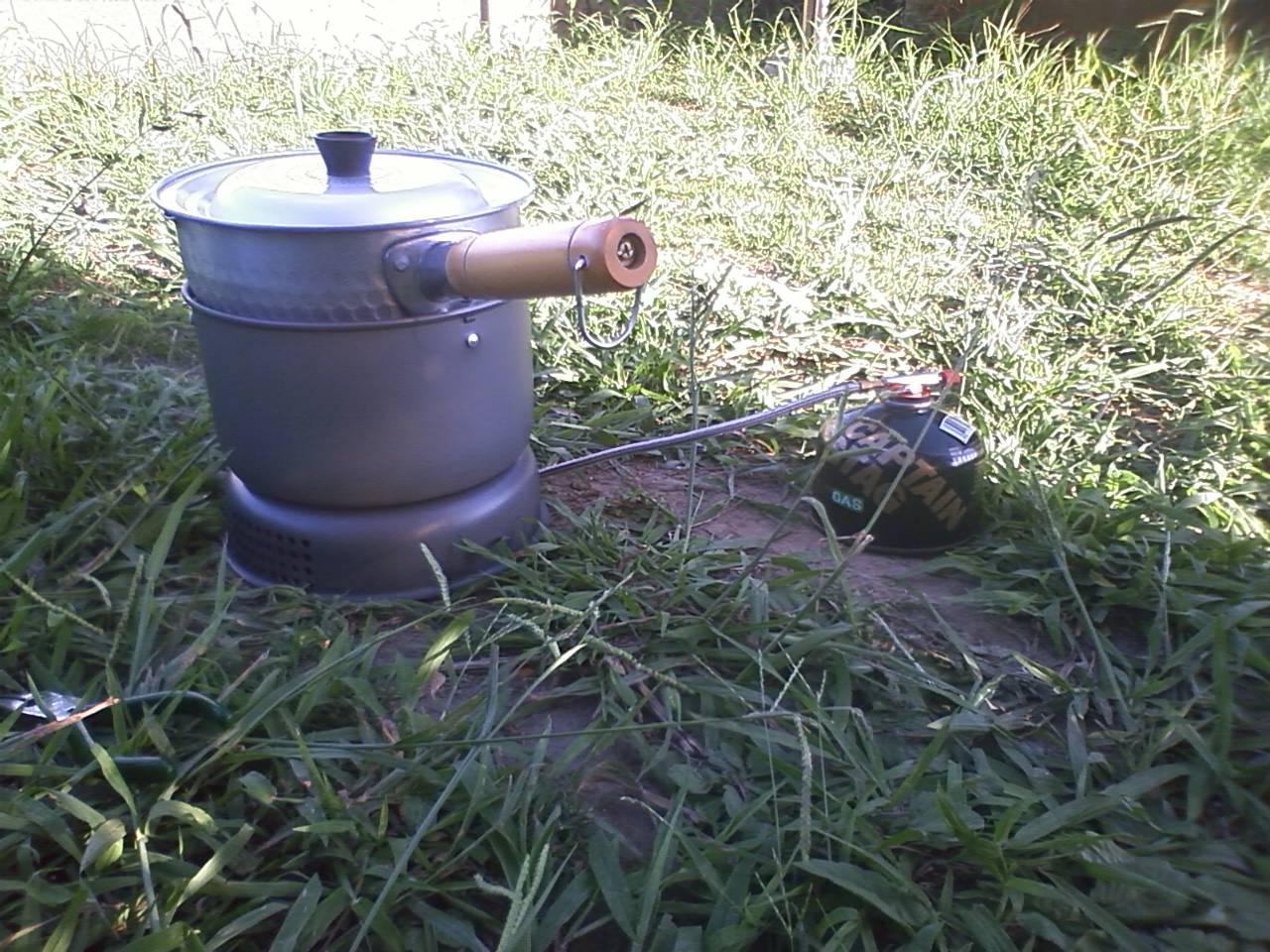 そうこうしているうちに燃料切れになってしまい、少々追加してから鍋位置を下げると沸騰し始めた。