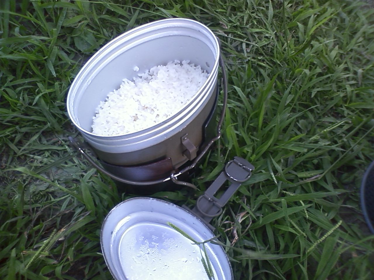 スウェーデン軍飯盒で米飯2合、BL100-Q1は豚汁を作る事にした。