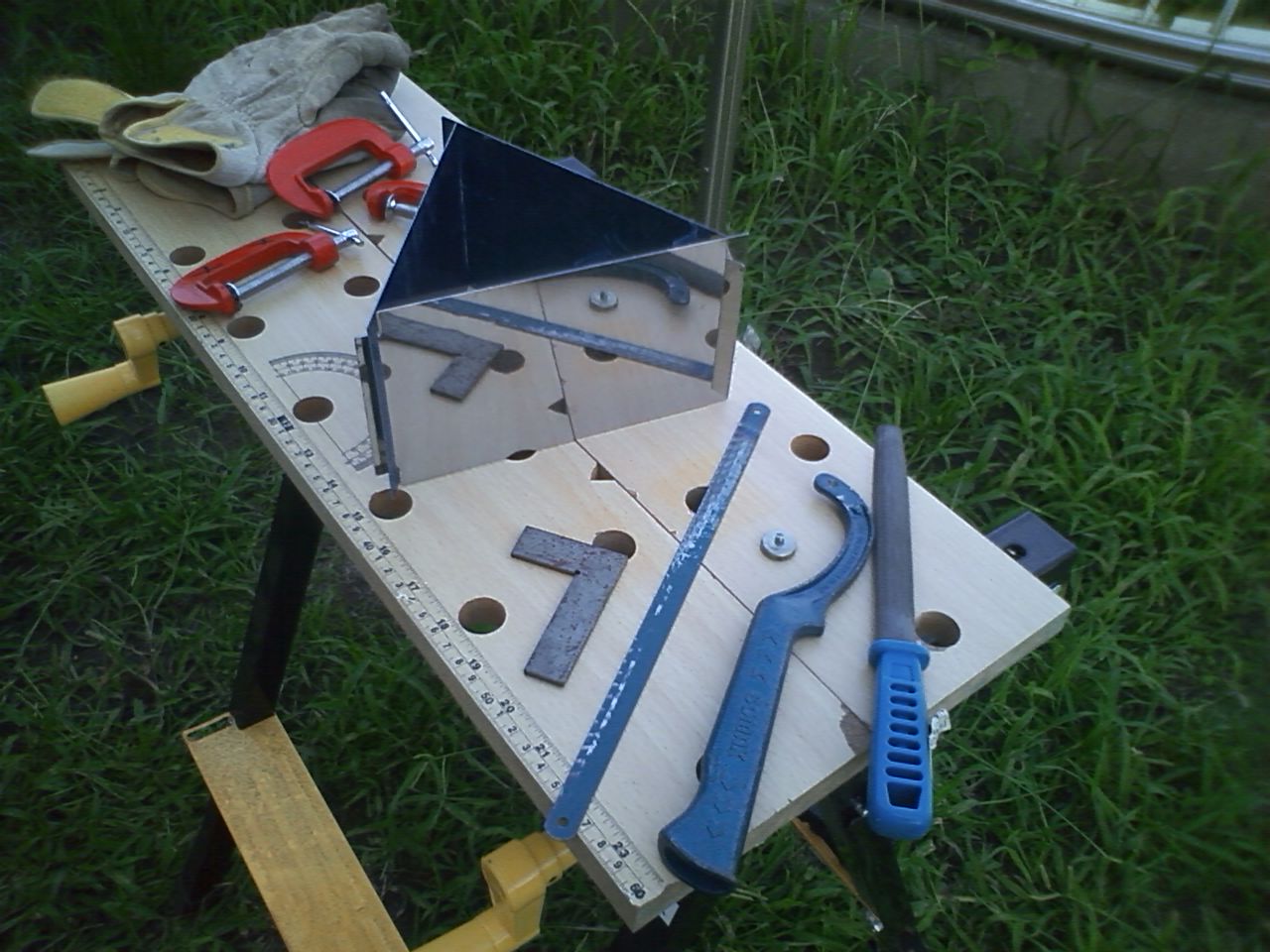 3枚のステンレス板の寸法を揃えて、組み合わせ用のスリットを作っただけであるが。