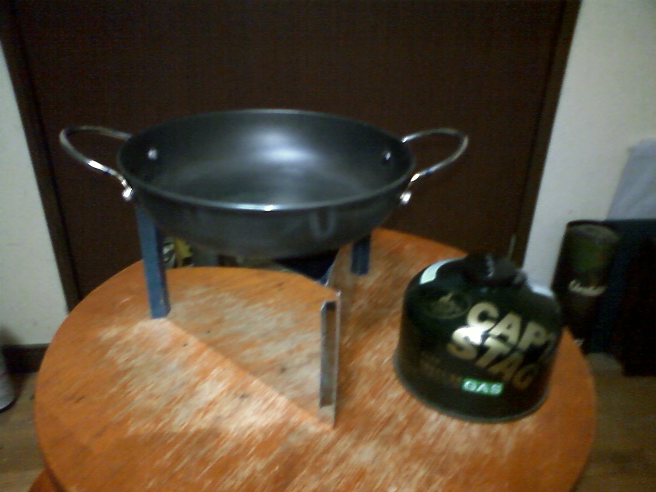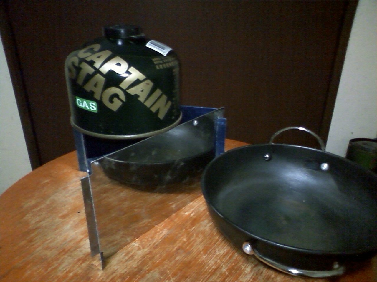 18cmの100均鉄鍋もこのとおり、ガス缶までジャストフィット。