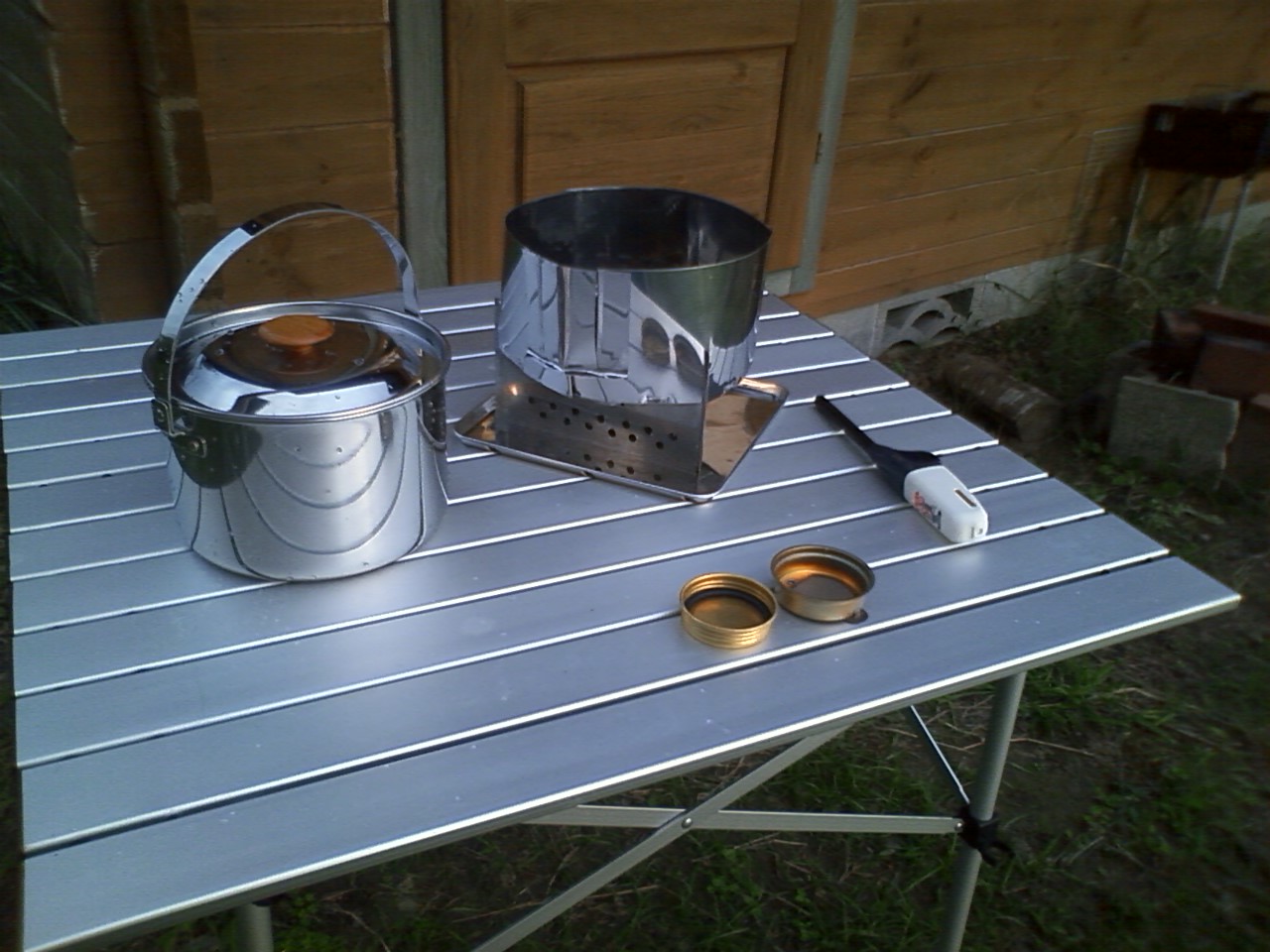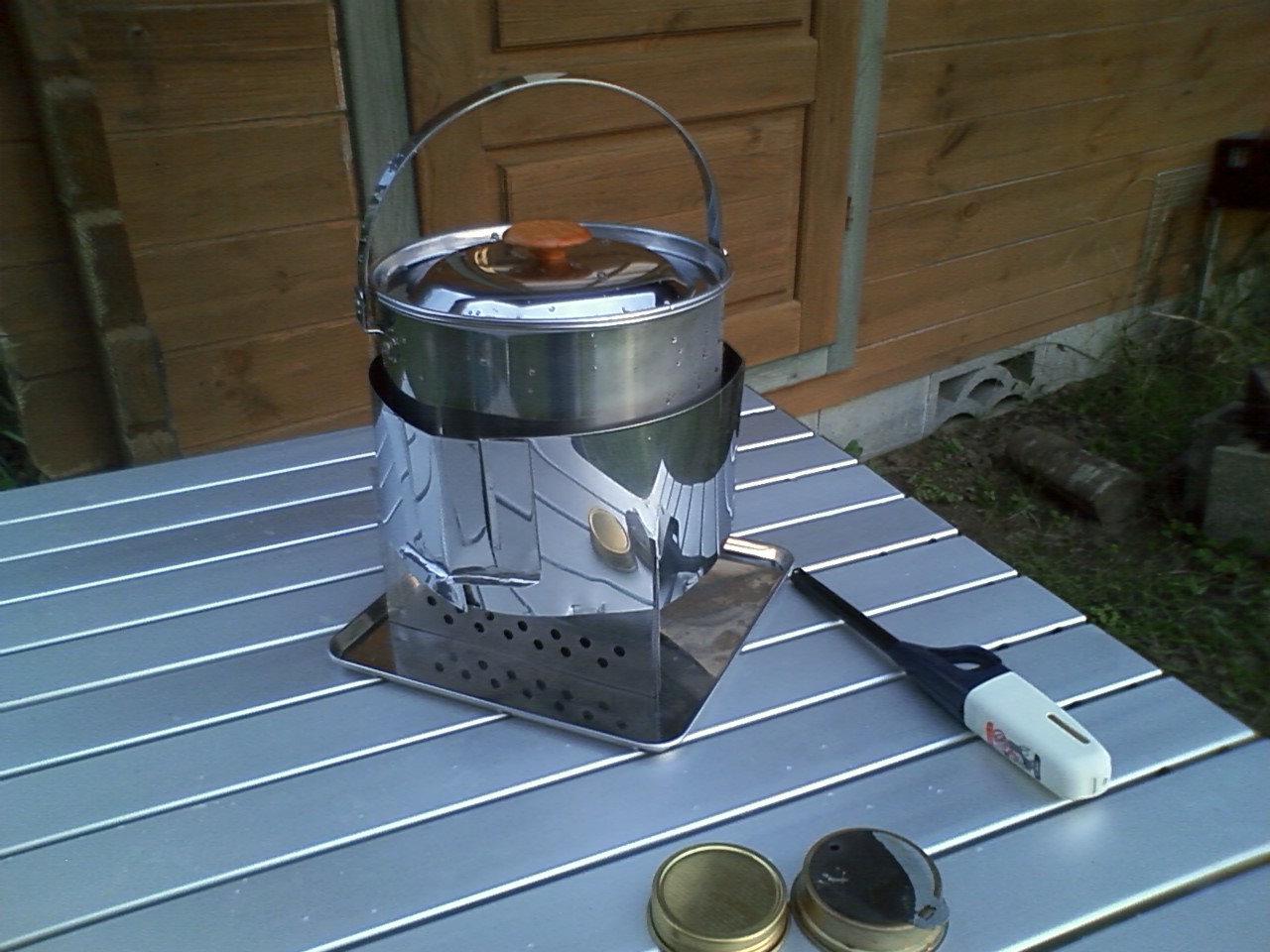 まず、取っ手が弦になっている鍋でテスト燃焼した。
