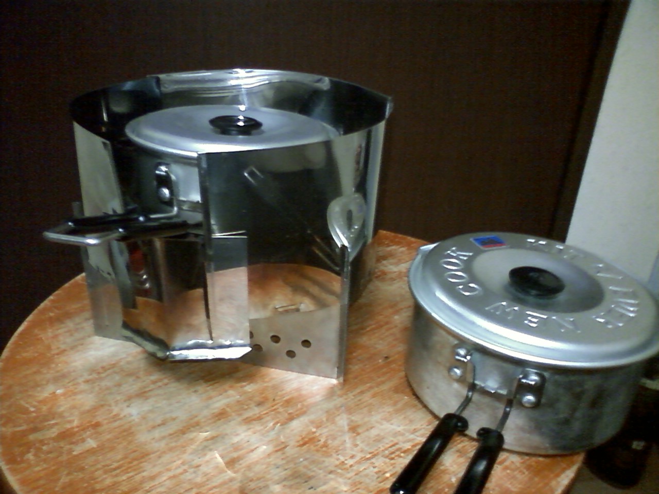 よく使っていたアルミの鍋セット大小と、無名メーカーのステンレス鍋を取っ手を付けたまま置いてみた。