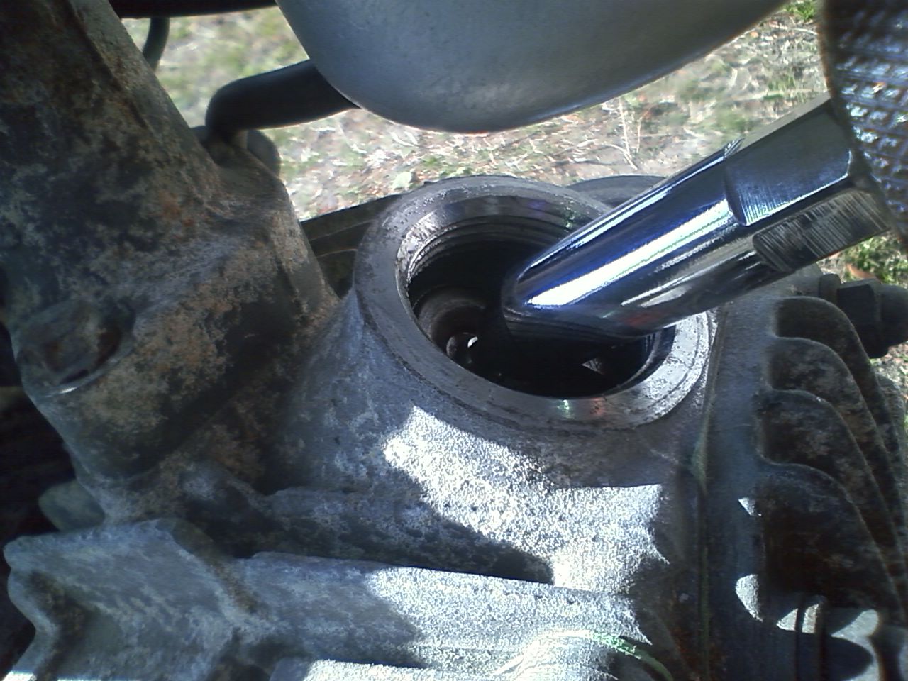 側面の穴から見えるナットにレンチをかけてグルグルと回し、上側の穴から見て所定の位置に合すのだ。