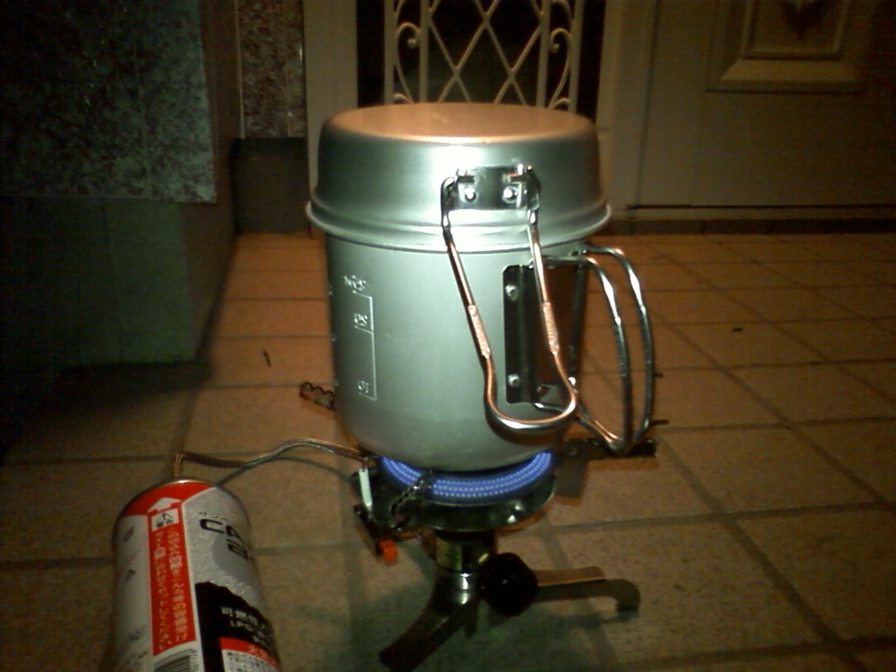 だが、アウトドア用のガス缶に直付けしたものと比べれば、かなり低重心で安定感があると思う。