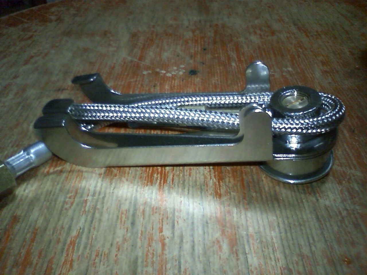 三脚の真ん中にバーナーを取り付ける部分があって、そこからガスホースが伸びていいる。