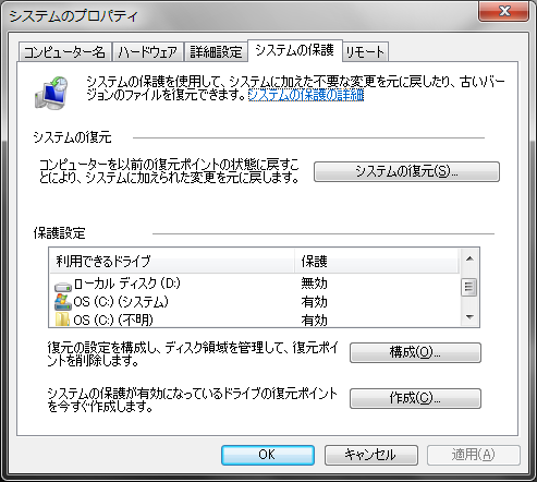 そうそう思い出した事がある、復元ポイントが作成できないのである。