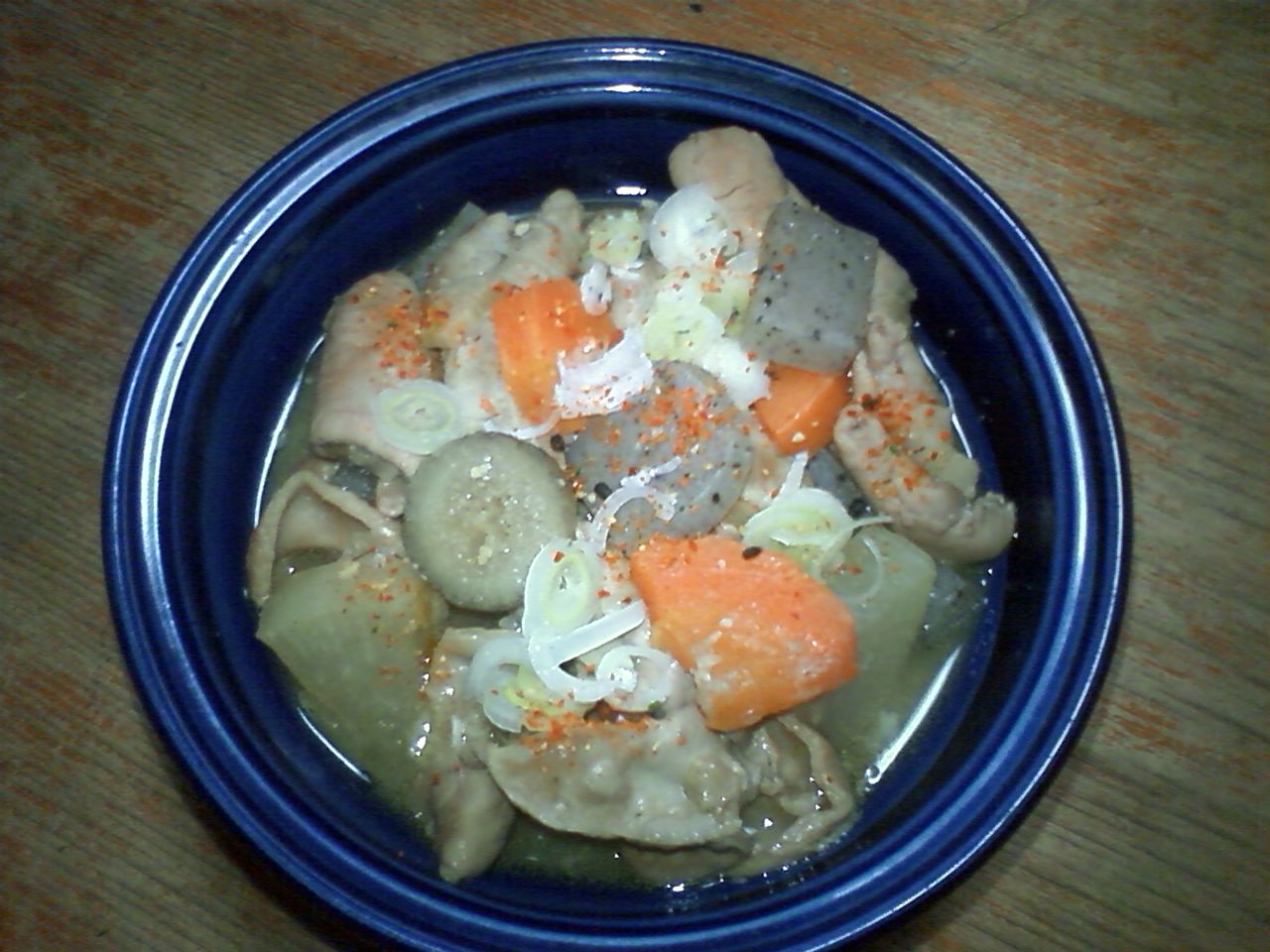 長ネギと七味とうがらしをパッパと振りかけて・・・