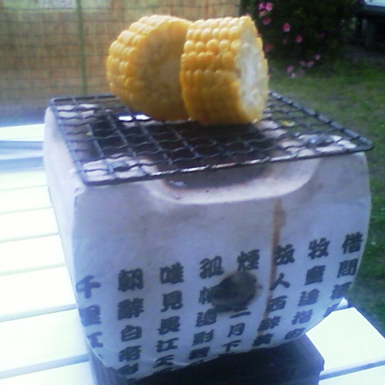 近所の人が茹でたトウモロコシを持ってきたので、焼いてみた。
