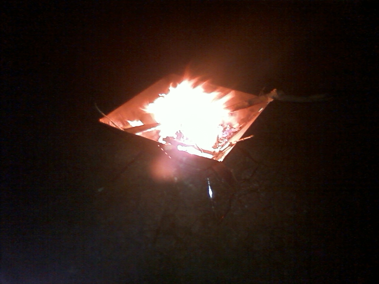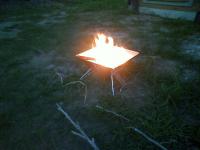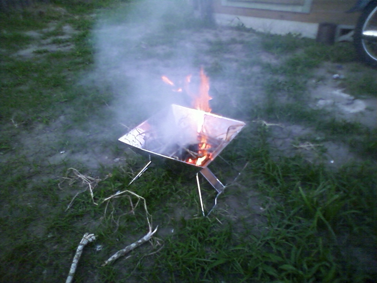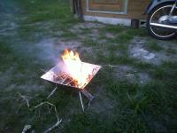 一時間弱ほど焚き火をした後で水をかけて消火したが、コンロの変形はないようである。