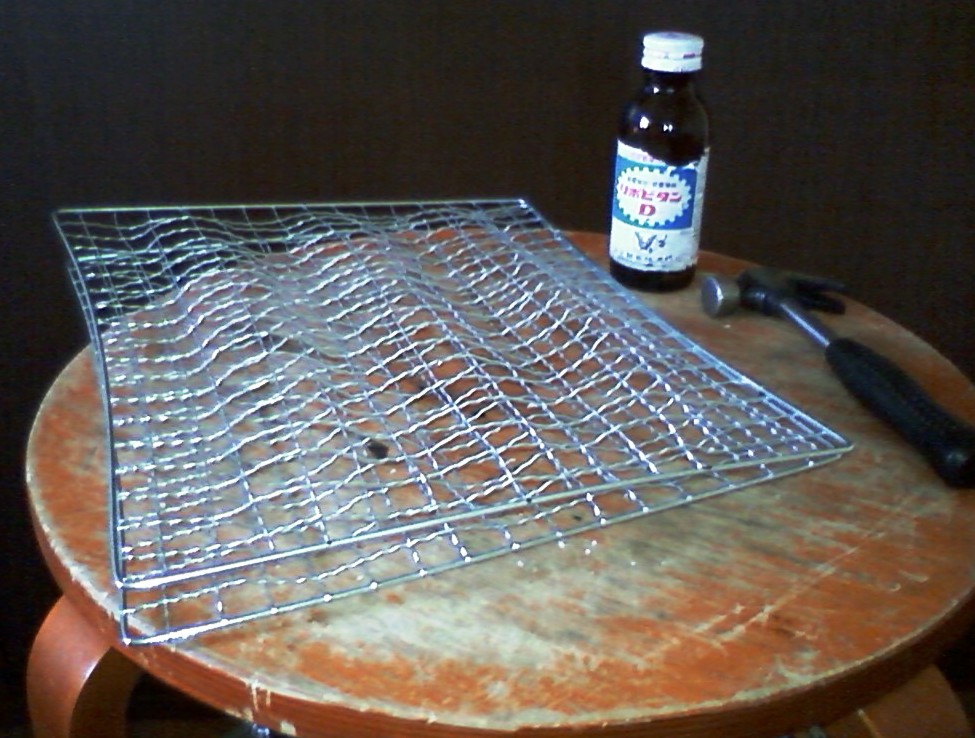 (ダイソーの安っぽい細い針金網がとても加工しやすいのだ)