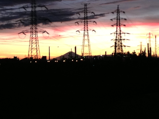 こちらで夕方に見える富士山は、いつでも大きなシルエットである。