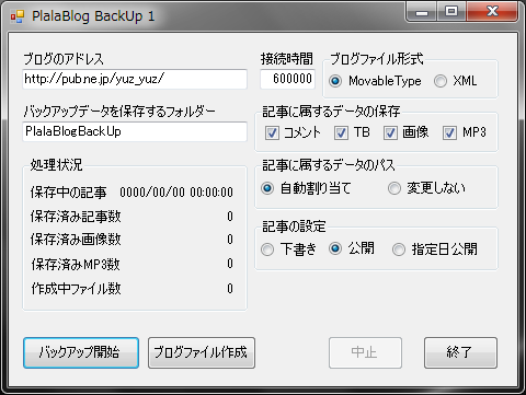現時点での機能は前日と変わらず、本文とコメントそれに画像を自分のPCに保存する事。そして、その保存したデータから別のブログ用のファイルを作成するところまで出来た。この画像のような機能をすべて持たすには、まだ数日が掛かりそうである。
