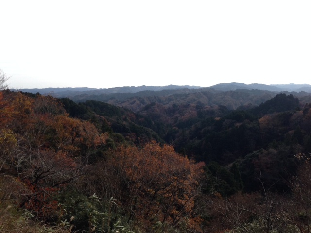 山の木々に赤味は少なく、もう枯れ葉となっている。