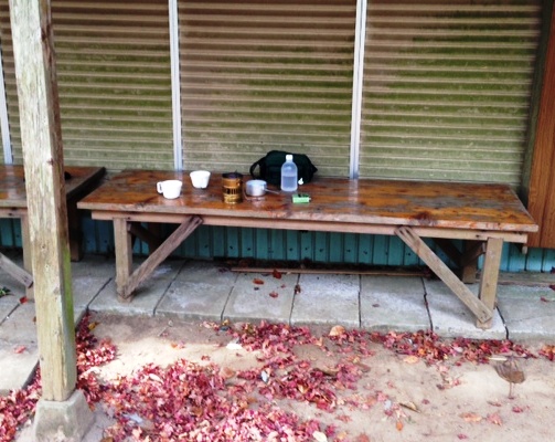 ここでやっと一服、いつもの携帯コンロで湯を沸かしてお茶を楽しむ。