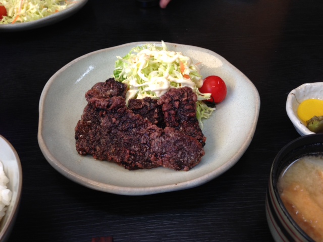 今日は約束してあった日なので、午後から遠出をしてクジラを食べて来た。